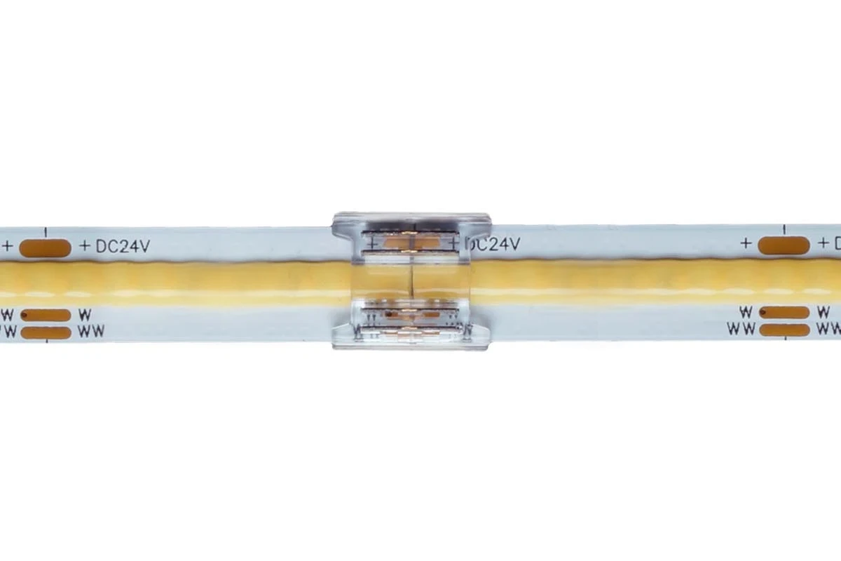 Die COB LED-Stripe Verbinder 2-polig ermöglichen eine einfache und sichere Verbindung von COB LED-Streifen – ganz ohne Löten.
